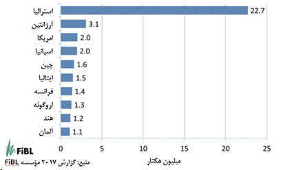 نمودار 1: بیشترین سطح زیر کشت محصولات ارگانیک در بین کشورهای جهان