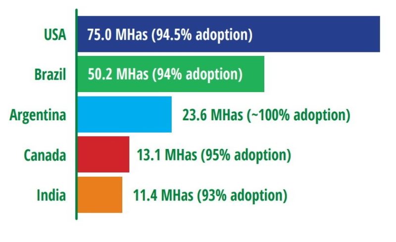 پذیرش ذرت، سویا و پنبه در آمریکا، 94.5 درصد بود.