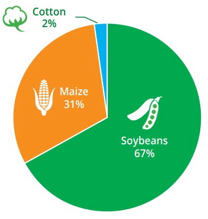 تصویر 3- توزیع سطح زیر کشت محصولات تراریخته در برزیل در سال 2017