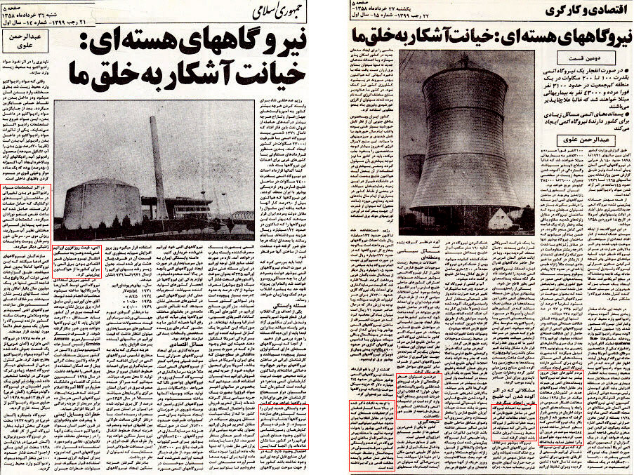 تصویر: نمونهای از هجمه رسانهای دهه 50 و 60 علیه انرژی هستهای از سوی عوامل صلح سبز با ادعاها و استدلالهایی مشابه ادعاهای امروز این جریان علیه مهندسی ژنتیک و تولید داخلی محصولات تراریخته