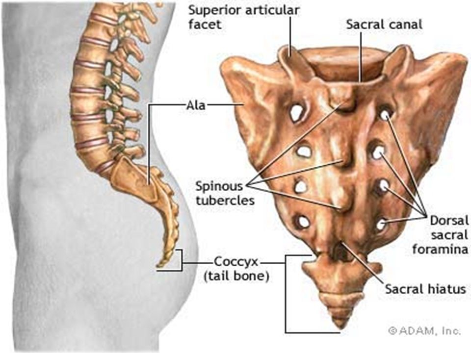 تصویر 3. به استخوان coccyx یا دنبالچه در تصویر توجه کنید. این استخوان باقیمانده یک دم از دست رفته در انسان است.