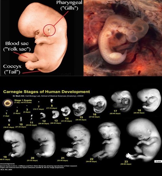 در حقیقت همه ما در مرحله ای از زندگی دم داشته ایم! وقتی هنوز در داخل رحم هستیم، اطلاعات موجود در DNA بدن را برای ساخت یک دم هدایت می کند. اما زمانی که مرحله خاصی از رشد می رسیم این عمل متوقف می شود (3). شکل 4 تصاویری از جنین انسان را نشان می دهد. همانطور که میبینیم جنین انسان تا هفته پنجم رشد دارای یک دم است.