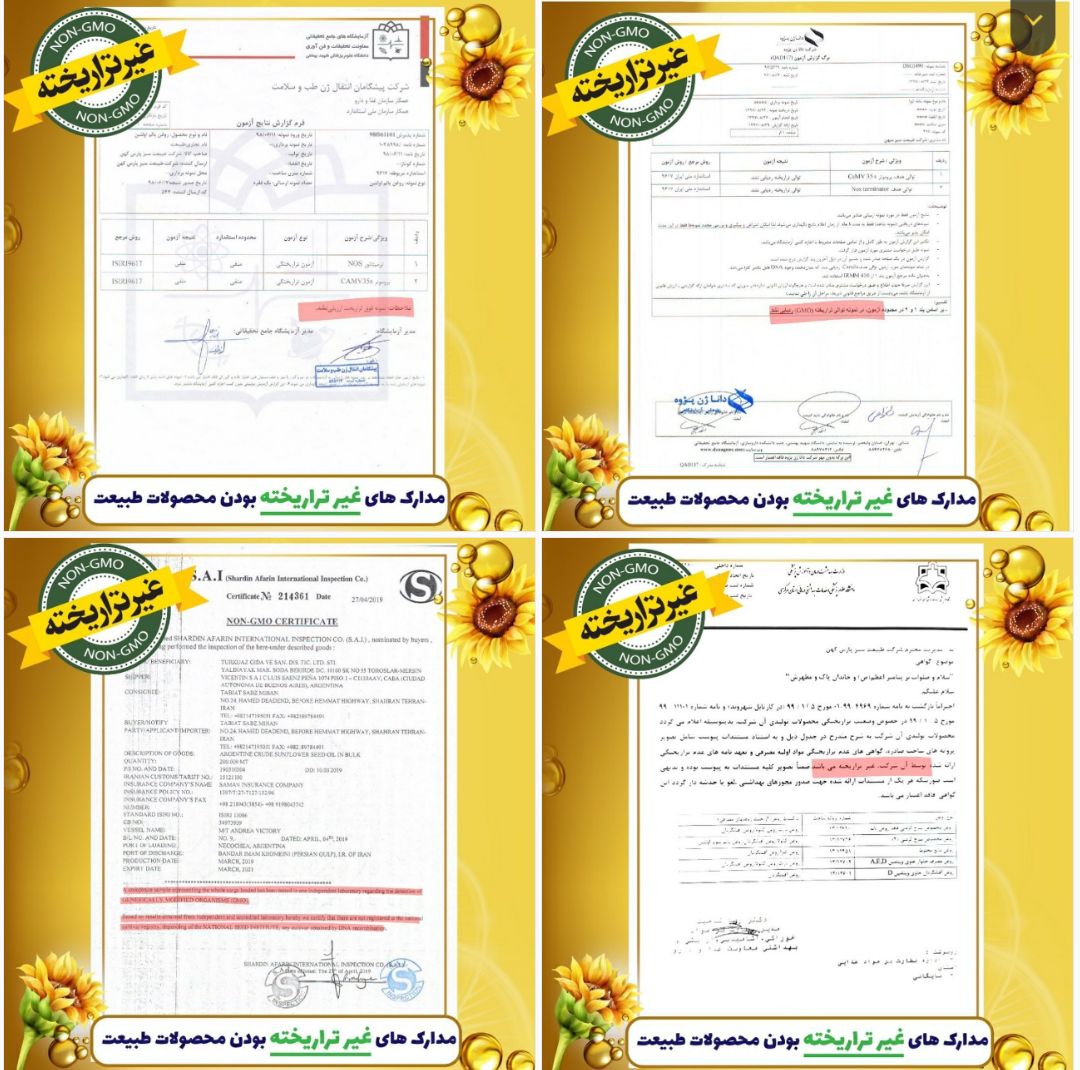 - سند چهارم (پایین سمت راست) مربوط به روغن آفتابگردان و پالم است که از اساس تراریخته نیست!!!!