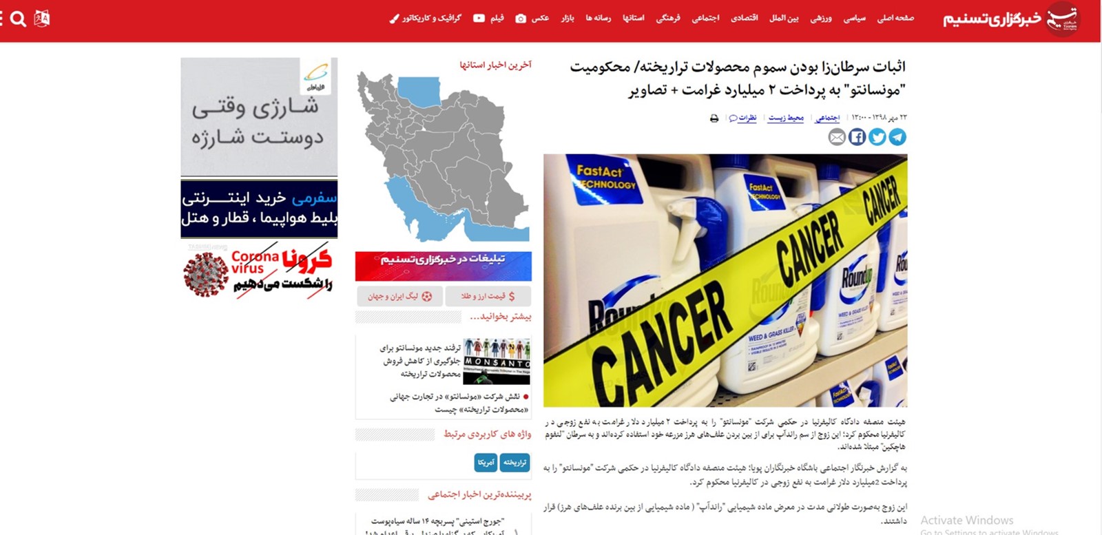 یادداشت نویس تسنیم که خبر محکومیت شرکت مونسانتو را پوشش داده است در تلاشی عجیب و خنده دار در صدد است سم رانداپ را به تولید بذرهای تراریخته ربط دهد!!