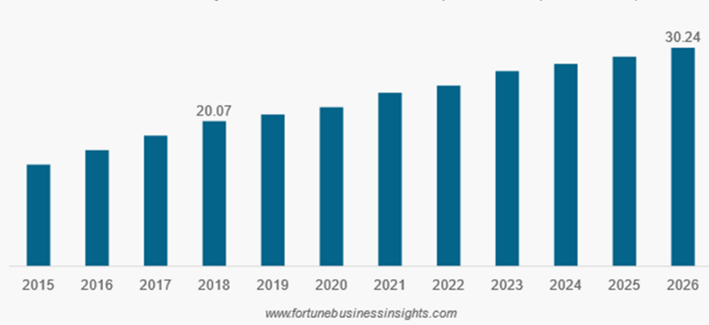 شکل 1- بزرگی بازار جهانی بذرهای تراریخته (2026-2015) (میلیارد دلار آمریکا)