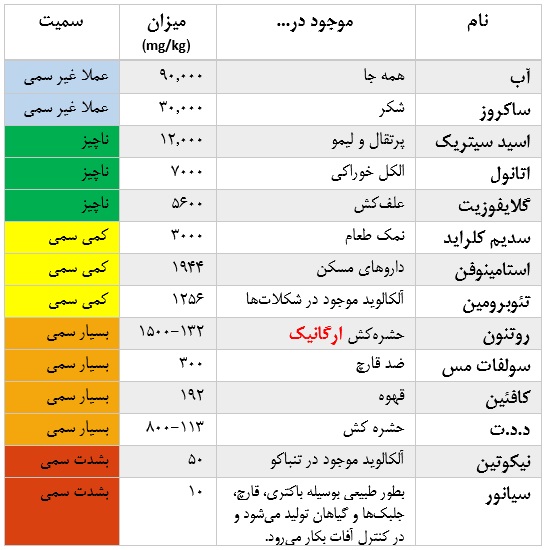 شکل ۳: جدول سمیت مواد مختلف در مقایسه با گلایفوسیت